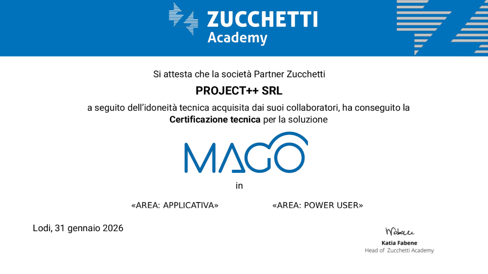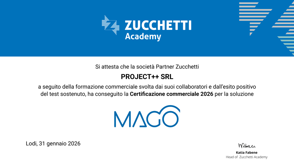 Project++ è Excellence Partner del gruppo Zucchetti per il software gestionale MagoCloud.