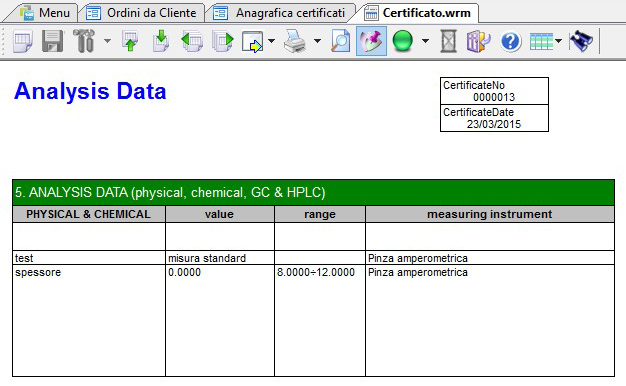 La gestione dei certificati legati ai prodotti venduti è completamente personalizzabile attraverso la definizione di “modelli di certificato” a cui sono associati una serie di attributi ed un report specifico per la loro stampa:
