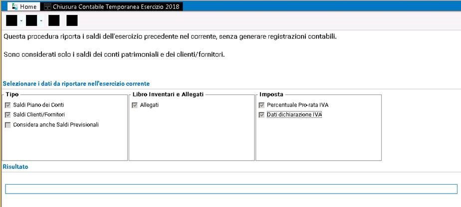 Queste due procedure possono essere eseguite più volte, quando si sono poi effettuate modifiche all'esercizio precedente e si vogliono riallineare nuovamente i saldi.