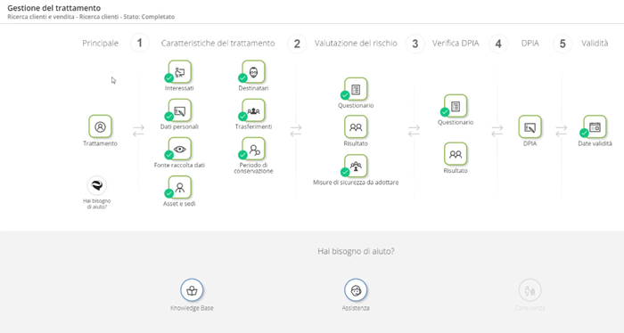 Gestione completa dei trattamenti – Gestire i trattamenti non è mai stato così facile! Col flusso guidato, compilare le informazioni richieste per la redazione del registro, compresa la valutazione dei rischi secondo standard ENISA sarà un gioco da ragazzi! E se ti serve, anche la DPIA è integrata, con notevole risparmio di tempo! Produzione documenti necessari – Hai a tua disposizione i modelli di documenti per ogni tipologia (informative, nomine, lettere di autorizzazione, ecc.): un'ottima base di partenza per realizzare i tuoi documenti personalizzati e, grazie al fascicolo documentale, è semplicissimo identificare quali documenti produrre e consegnare a seconda della situazione! Gestione consensi – La gestione dei consensi è integrata ai trattamenti così potrai gestirle completamente, specificando le volontà dei singoli interessati per ciascuna finalità, oppure indicare semplicemente dove poter reperire questo dettaglio informativo, utile in caso di verifica ispettiva! Richieste dell’interessato – Puoi organizzare e monitorare tutte le richieste che ricevi dagli interessati per l’esercizio dei loro diritti, tenendo sotto controllo la scadenza operativa nel rispetto del regolamento stesso! E, se necessario, potrai anche generare un registro riepilogativo di tutte le richieste. Data Breach – Sei in presenza di un data breach e non sai come comportarti? Con GDPR Zucchetti hai a disposizione un percorso strutturato che ti accompagnerà nella registrazione di tutte le informazioni necessarie e nell’eventuale produzione della notifica per il Garante, oltre alla generazione del registro dedicato! Dashboard e grafici – Un cruscotto di sintesi, con i principali indicatori significativi per ciascuna area tematica, ti aiuterà a comprendere lo stato di completamento del tuo modello privacy e, grazie ai grafici statistici, hai a disposizione anche utili spunti di riflessione.
